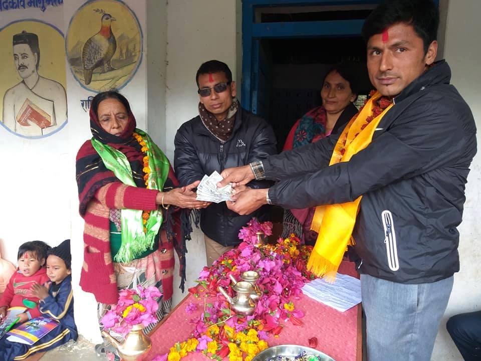 सोही अवसरमा मुसिकोट नगरपालिका २ रातचौर निवासी टिकाबहादुर,हुमकुकारी,खिमकुमारी फाउण्डेशन नामका अक्षयकोषदाता खिम कुमारी खत्रीले नगद रु। ८ हजार रकम विद्याललयका प्रधानाध्यापक कौरव बहादुर खत्री र विद्यालय व्यवस्थापन समिति अध्यक्ष नर बहादुर खत्रीलाई हस्तान्तरण गरेकी थिइन।